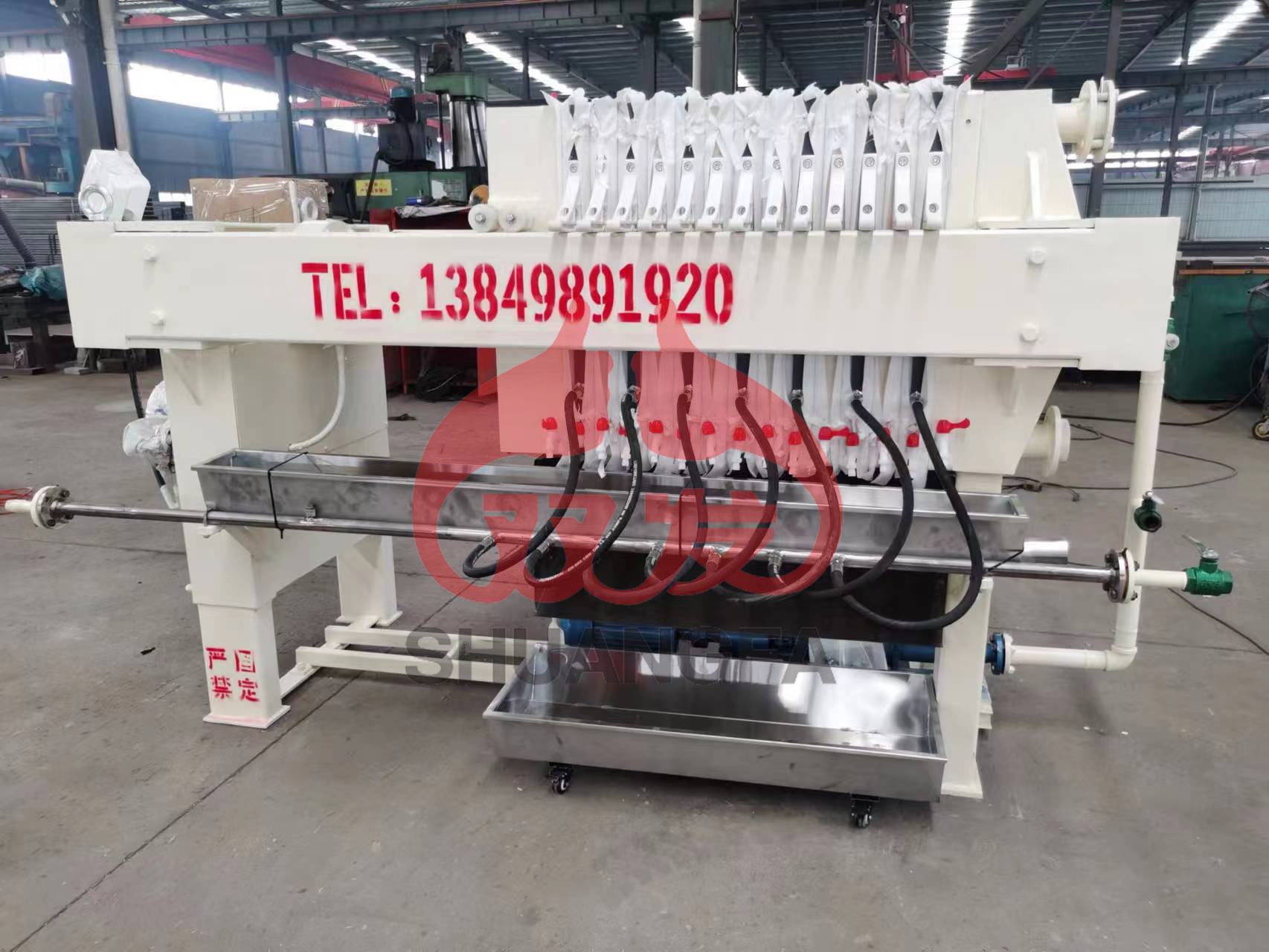 壓濾機(jī)的自動(dòng)接液翻版是安裝在濾板下方的一種集液裝置,當(dāng)壓濾機(jī)在進(jìn)料時(shí),濾板下方滲漏部分液體,流入翻板后(自動(dòng)集水盤(pán))順流到壓濾機(jī)兩邊,通過(guò)集液槽匯入集中池。